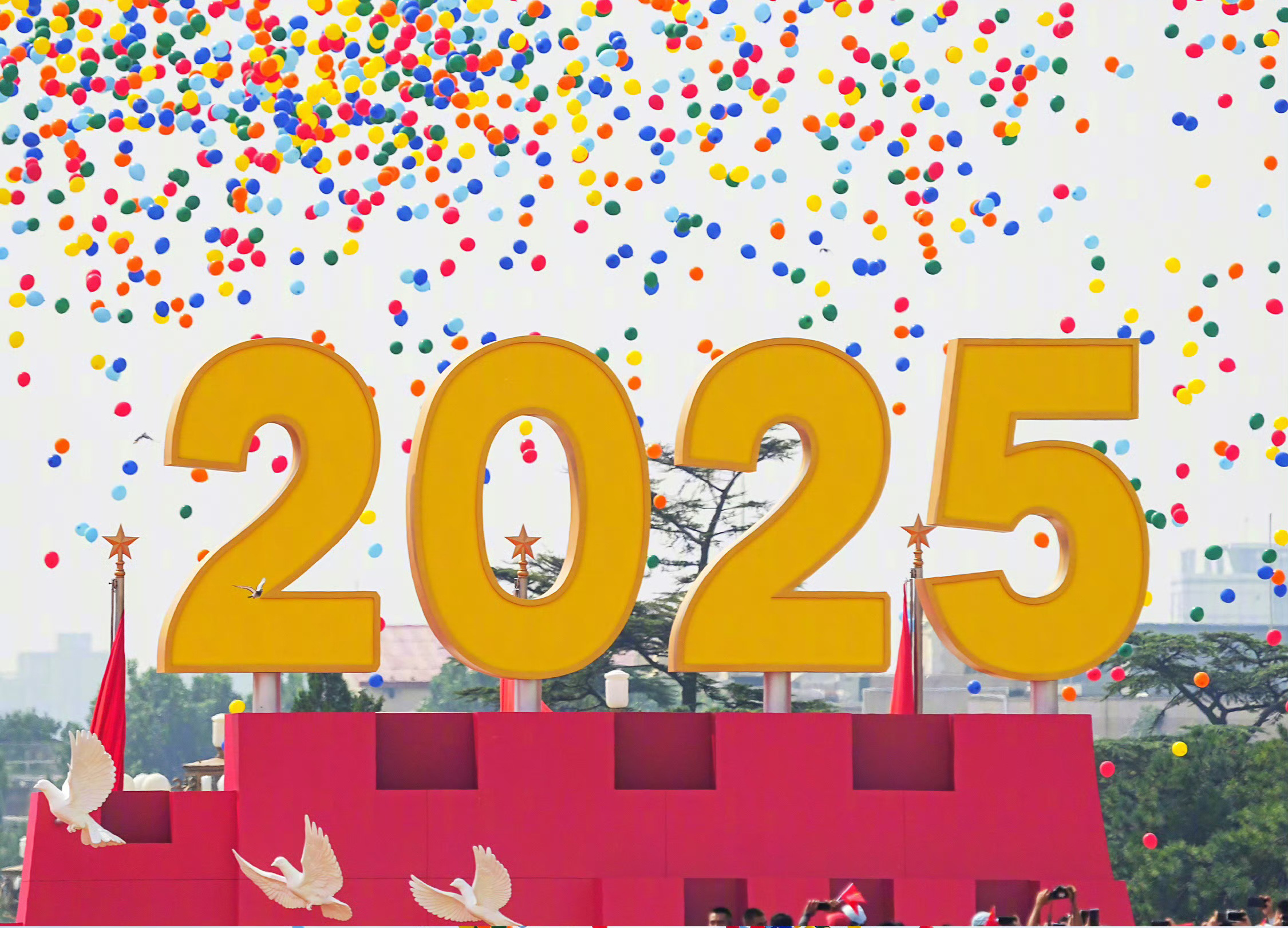 As the first rays of morning light caress Tiananmen Square, the five-star red flag rises slowly, fluttering gracefully in the breeze, while white doves—symbols of peace—soar high against the sky. Today, China thrives in harmony, with all things flourishing and radiating vitality, ensuring both national prosperity and peaceful, prosperous lives for its people.